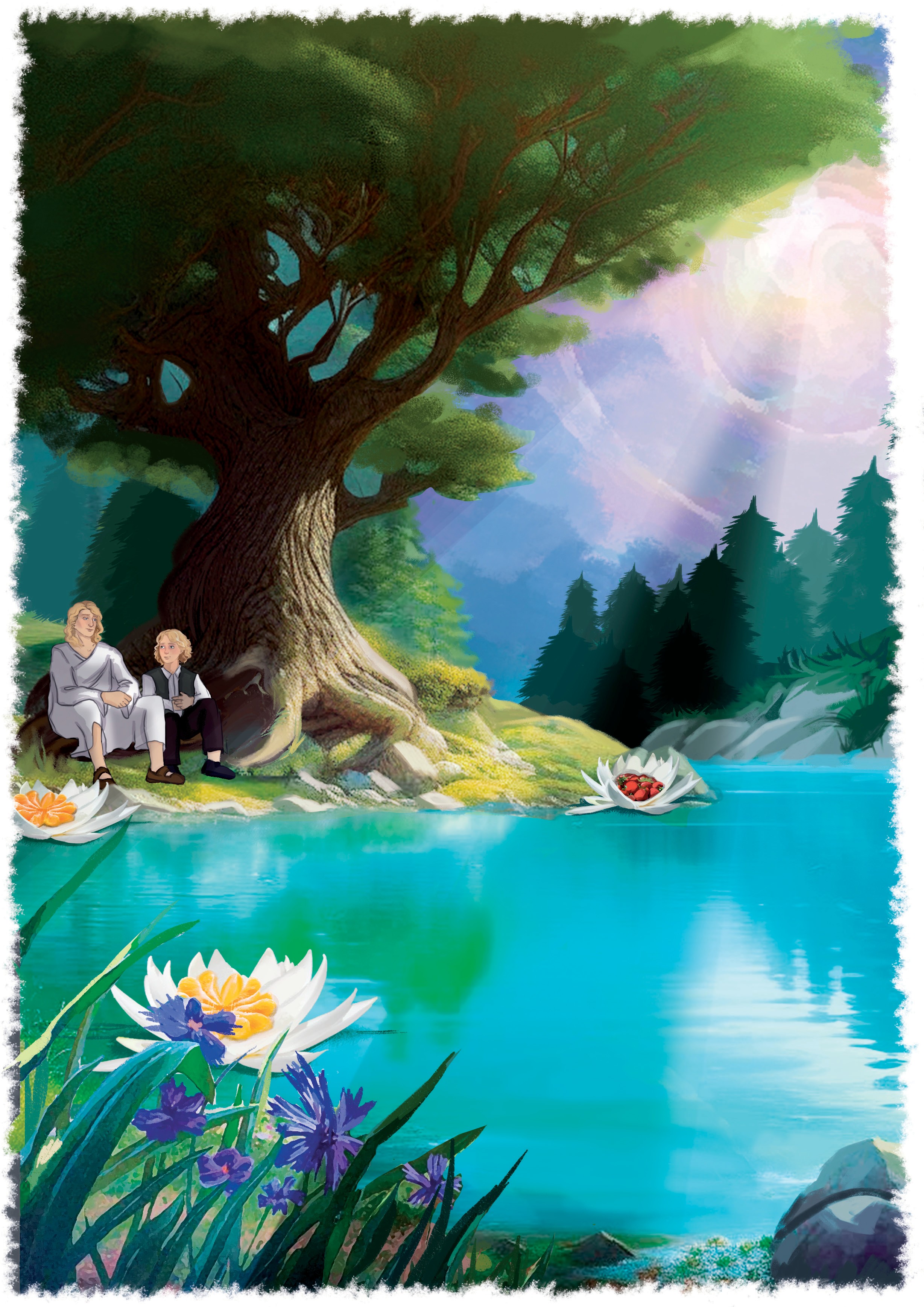 Отец взял сына за руку, и они отправились вниз по тропинке. Шли они не спеша. Тёплый воздух был напоен тонкими ароматами цветов. Травы и кусты словно бы кланялись отцу и сыну. Отовсюду доносились птичьи трели, только самих певунов не было видно. Изредка в воздухе вспыхивали золотистые искорки, словно ктото рассыпал золотой порошок. Как же было чудесно идти с отцом рядом, наслаждаться красотой удивительного мира и говорить о жизни!