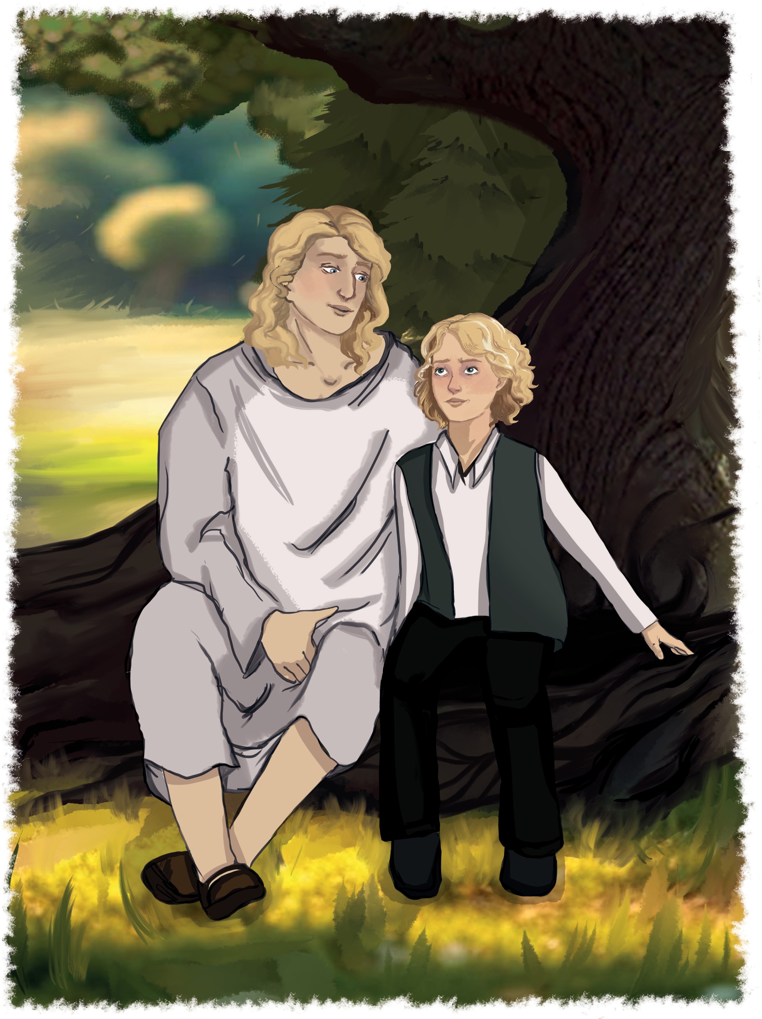 Когда первые чувства потихоньку улеглись, отец указал сыну на тропинку. Дойдя по ней до рощицы, они устроились на траве под какимито местными деревьями.