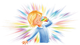 На ощупь стакан был холодным. На стекле еле заметно было написано: «Радужный сон». Петя, конечно же, умел читать, и прочитал слова правильно. Но странное название его удивило.