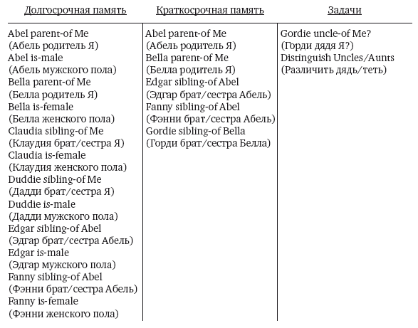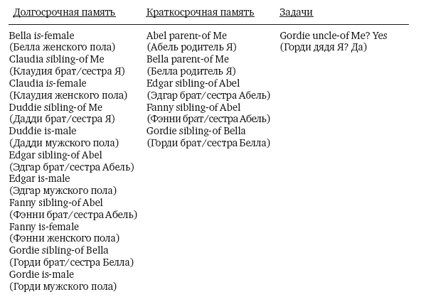 Это демон, который наиболее явно воплощает в себе понимание системой значения слова «дядя»: это человек мужского пола, брат одного из родителей. Система добавляет запись о том, кто является дядей, в раздел «Долгосрочная память», а не «Краткосрочная память», потому что эта запись представляет собой элемент знания, который всегда истинен: