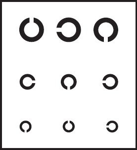 Хорошо ли вы видите ночью? Есть люди, которые днем видят отлично, а ночью, при плохом освещении, значительно хуже. Проверить свою способность видеть в темноте можно с помощью следующего теста. Проводить его надо днем в хорошо освещенной комнате. Если на расстоянии 5 м вы сумеете точно описать только первый ряд фигур, изображенных на рис. 1, то лучше ограничить ночные поездки либо обратиться к окулисту за более подробной консультацией. Если вы хорошо видите нижний ряд, значит, со зрением у вас все в порядке.