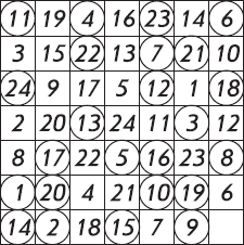 Попробуйте выполнить еще одно, более сложное задание. В табл. 2 отыщите все цифры. Искать их надо следующим образом: сначала единицу, обведенную в кружок, потом единицу без кружка, далее двойку в кружке, потом двойку без кружка и так далее до двадцати четырех. Если время менее 80 с – отлично, более 100 с – плохо.