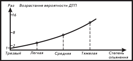 Алкоголь – ваш враг № 1Не будем в очередной раз агитировать вас за трезвость. Приведем только полученный в результате экспериментов график (рис. 4), позволяющий предсказать будущее того, кто попытается сочетать алкоголь с вождением автомобиля, и сообщим, что алкоголь – причина 50 % всех ДТП со смертельным исходом.