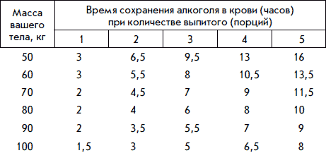 2. Если вы выпили 3 и более порций, оставьте для себя запас времени, для чего к полученному по таблице значению прибавьте 3 ч.