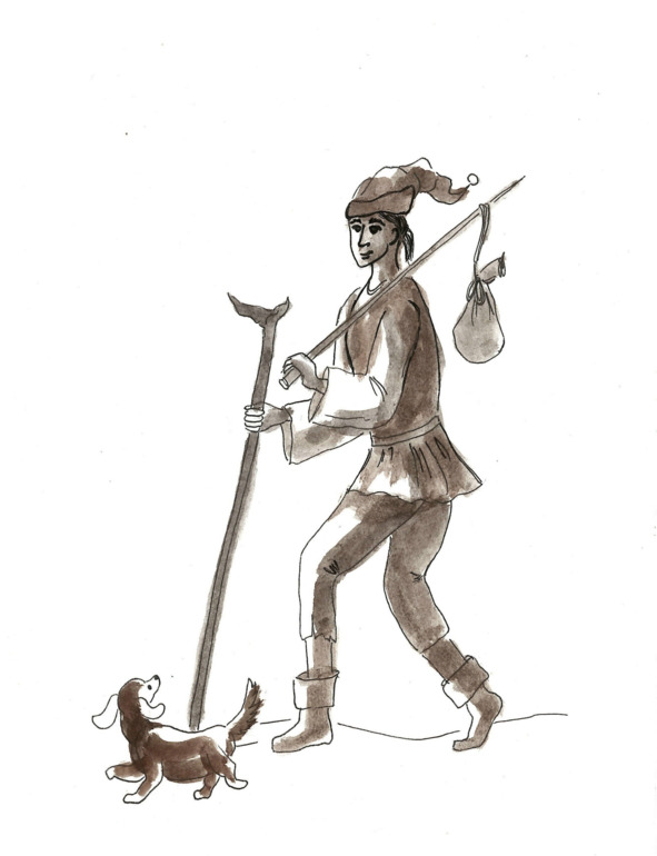 Путник тихий и простойШёл дорогою прямой.Коль случится поворот,Всё равно идёт вперёд.По дорогам, по степям,По горам и по лесамШёл всё время, не спеша,Нёс в кармане два гроша.И дошёл до края света.Вы не знаете где это?Воля
