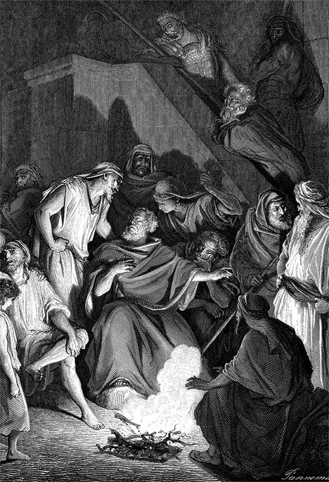 58. и, выведя за город, стали побивать его камнями. Свидетели же положили свои одежды у ног юноши, именем Савла,