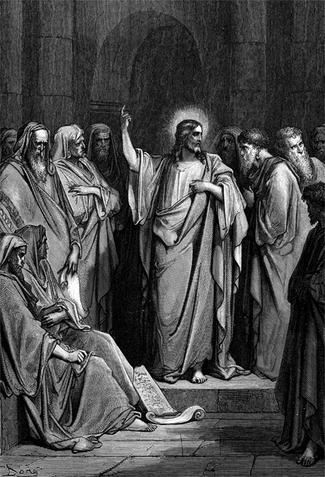 Иисус Христос в синагоге Назаретской. (Евангелие от Луки 4:14–8)