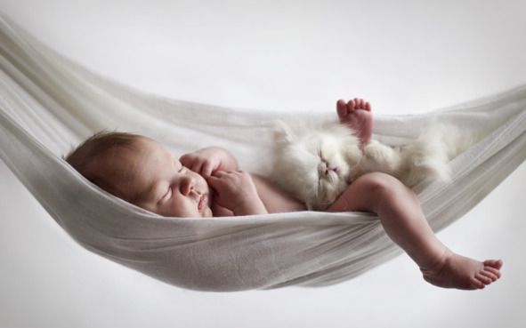 Малыш и маленький котенокИграют, возятся в углу,И разговор у них спросонок:«Гу-гу, агу, мяу-мяу, гу-гу…»Друг друга будто понимают,Котёнок радостно мурчит,Играть устанут, засыпают,Пушистый хвостик лишь торчит…