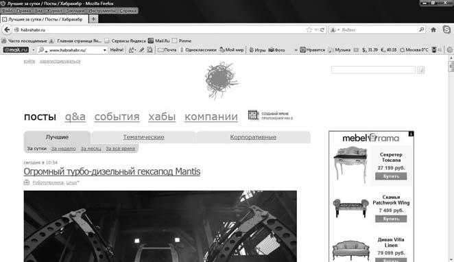 Существует множество тематических сообществ, например гики (увлечены гаджетами). В Интернете немало ресурсов, созданных для них, тот же www.habrahabr.ru (рис. 14), где анонсируются отдельные устройства – мышка с кондиционером или часы с холодильником, например.