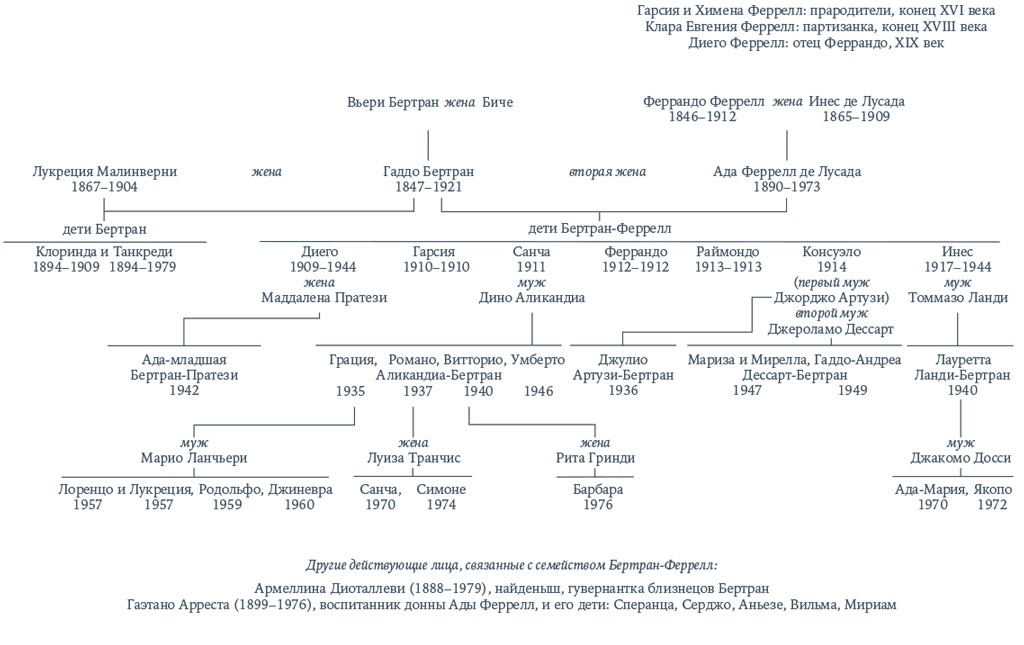 Эх, Лауретта, Лауретта! Ты ведь была так рада узнать, кем были наши предки, чем они занимались, что, например, происходило между дядей Таном и Армеллиной или что за художник изобразил Гарсию и Химену в Ордальском соборе… Ты любовно хранишь парчовое платье, которое наша бабушка, донна Ада Феррелл, надевала в день свадьбы. А свадьба, видишь ли, подразумевает общую постель! Что же происходит по ночам в этой постели? В следующие несколько лет родились дети, семеро, – их что же, принес Дух Святой в виде голубя? Неужели тебе, Лауретта, действительно нужно объяснять, как это происходит?