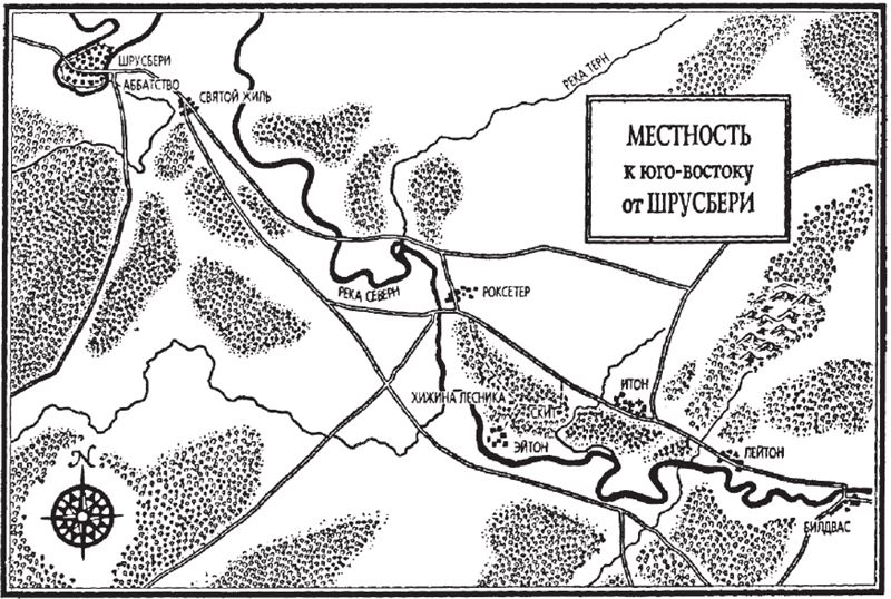 Погожим утром, когда предрассветный туман уже поднялся, Хью верхом ехал по городу, – сначала немного вверх по холму в сторону Хай-Кросс, затем круто вниз по склону вдоль Вэйла к восточным воротам, затем через каменный мост в Форгейт, где на фоне голубого неба маячила увенчанная крестом колокольня аббатской церкви. Под пролетами моста быстро, но спокойно Северн стремил свои воды, в эту пору еще по-летнему ласковые; вокруг двух поросших травой небольших островков была видна узкая бурая полоса, что исчезнет из виду после первого же сильного ливня, который принесет с собой бурные воды из Уэльса. По левую руку, где перед Хью открывался тракт, к самой обочине от реки подступали деревья и заросли кустарника, а дальше по тракту уже тянулись домики, сарайчики и сады Форгейта. По правую руку лежал большой мельничный пруд с травянистыми берегами; слабая дымка задержавшегося тумана еще серебрила его ровную гладь. За прудом была видна стена, опоясывающая владения аббатства, и привратницкая с воротами.