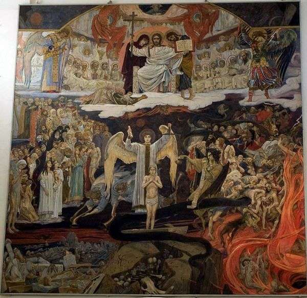 Перед моим взором серьёзная комиссия: в верхней части, охваченной огнём, восседает Христос-судья. Правой рукой он благословляет праведников, левой – отстраняет грешников.