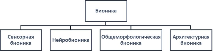 Нейробионика, сенсорная бионика, общеморфологическая бионика и обособленная ветвь – архитектурная бионика.