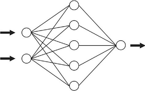 Нейроны входного слоя принимают сигналы и передают эти сигналы без обработки нейронам скрытого слоя. Притом при передаче сигнала, он еще и распределяется между другими нейронами неизвестным способом, так как каждый нейрон одного слоя связан с каждым нейроном следующего слоя.