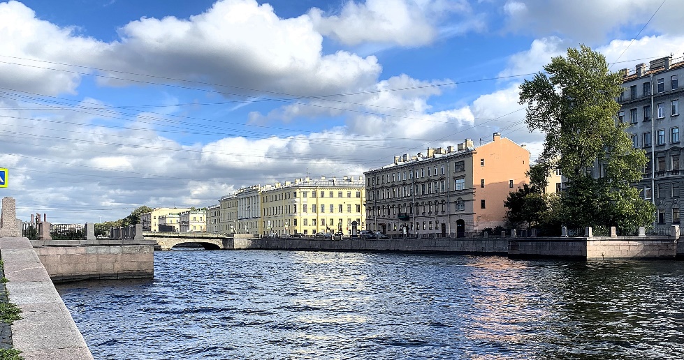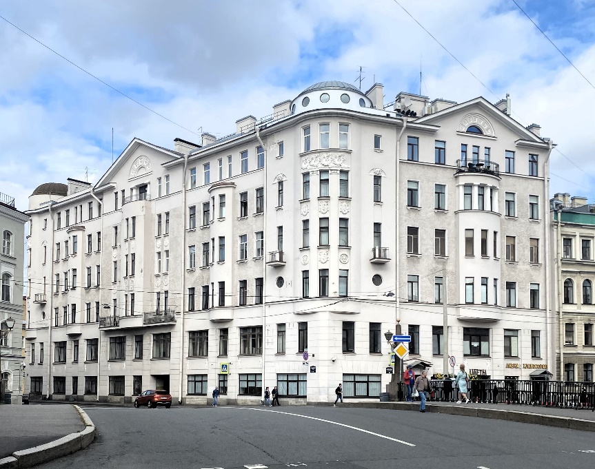 Пока собираются участники, полюбуемся видами набережных, а потом остановим взгляд на угловом доме, выходящем фасадами на набережную Фонтанки и Большую Подьяческую (Б. Подьяческая, 36 / Фонтанка, 131).