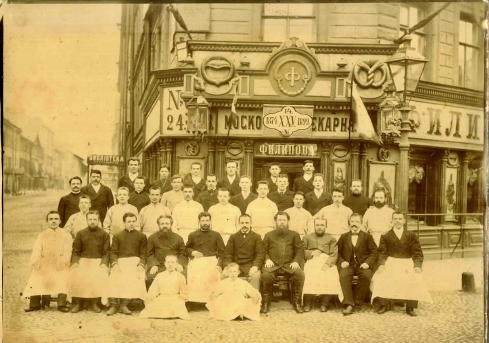 Впереди перекресток с Садовой улицей, на одном из углов которого стоит обычный дом (Б. Подьяческая, 24/ Садовая, 63), каких множество в нашем городе. Он был построен в 1872 году архитектором Николаем Фёдоровичем фон Брюлло. Когда-то давно весь первый этаж занимала одна из булочных Филиппова. На сохранившейся фотографии, сделанной в 1899 году, отчетливо видны помпезные каннелированные колонны, обрамлявшие окна и портал входа в заведение.