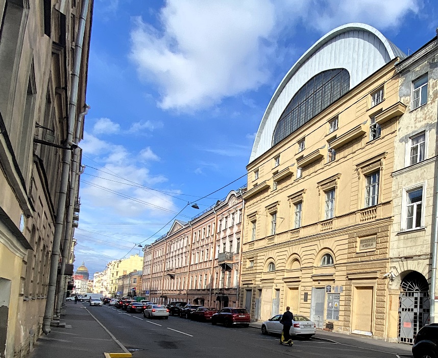 Продолжим прогуливаться по Большой Подьяческой, хотя любоваться на этом отрезке от Садовой до набережной канала Грибоедова, скажем прямо, особенно нечем. По обеим сторонам выстроились в ряд невыразительные, но добротные, чисто петербургские дома, хранящие, однако, за старыми стенами немало интересного.