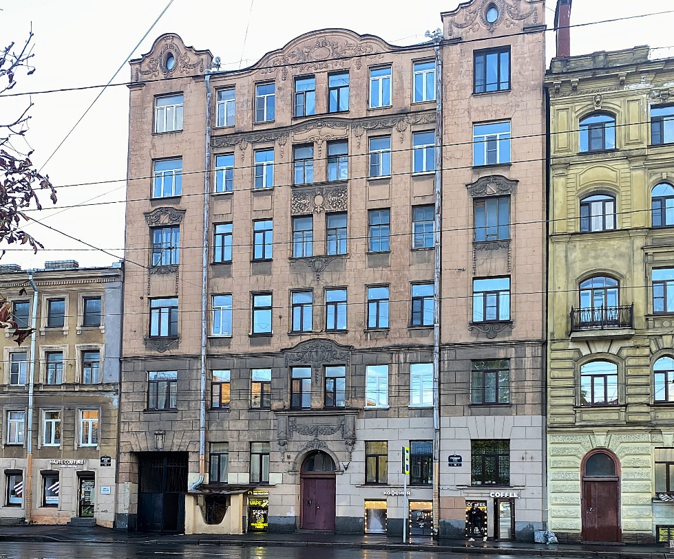 На противоположной стороне проспекта в рядовой застройке выделяется дом 16, созданный в 1911 году в стиле модерн. Архитектор Василий Васильевич Шауб украсил здание лепным декором растительного характера, а также фигурными фронтонами с овальными окнами.