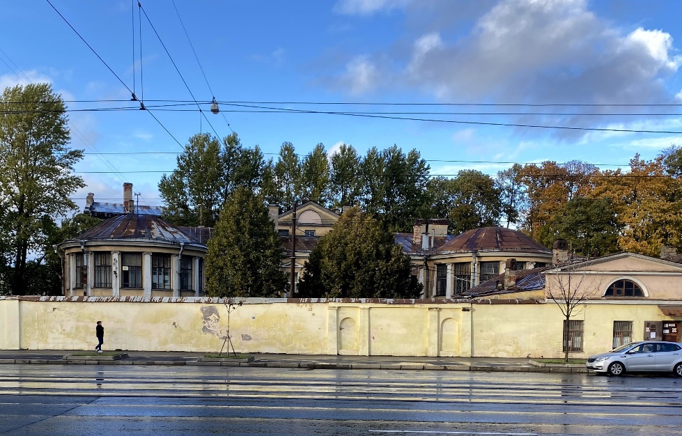 К нечётной стороне Троицкого проспекта примыкает обширная территория психбольницы имени П.П. Кащенко (изначально – «Александровская больница в память 19 февраля 1861 года»). За высоким каменным забором, разделяющем два мира, проглядывает необычное здание с двумя большими полукруглыми ризалитами по сторонам (Троицкий, 1/ наб. Фонтанки, 132Б). История не сохранила имя архитектора и точную дату постройки, но, несомненно – это барский дом конца XVIII – начала XIX века.