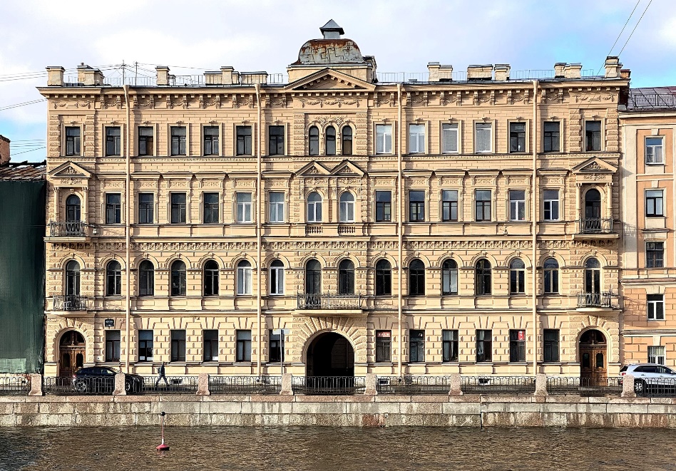 Дом 133 по набережной Фонтанки был сооружён в 1865 году по проекту архитектора Александра Христофоровича Пеля, а спустя восемь лет надстроен и расширен. В этом огромном здании, монотонный фасад которого слегка оживляет прилепленный посередине эркер-фонарик, в разное время жило много интересных людей. Среди них: солист Императорской балетной труппы Николай Густавович Легат, гражданский инженер Александр Иванович Дмитриев (автор здания Нахимовского училища на Петровской набережной), писатель Александр Иванович Куприн. В 1910-1917 годах здесь снимал квартиру инженер-технолог, пионер цветной фотографии Сергей Михайлович Прокудин-Горский.