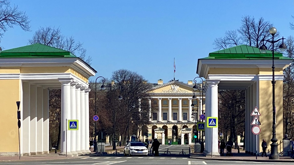 Мы приблизились к площади Пролетарской Диктатуры, откуда сквозь пропилеи, созданные в 1930-е годы, открывается вид на Смольный. Так петербуржцы-ленинградцы, да и не только они, привычно называют здание, ставшее как символом революции, так и символом городской власти. Оно было построено в 1806-1808 году выдающимся зодчим Джакомо Кваренги для института благородных девиц, который перебрался сюда из Смольного монастыря.