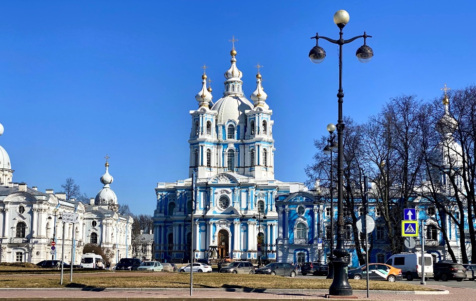 По Лафонской улице переместимся на площадь Растрелли, чтобы полюбоваться великолепным ансамблем Смольного монастыря.