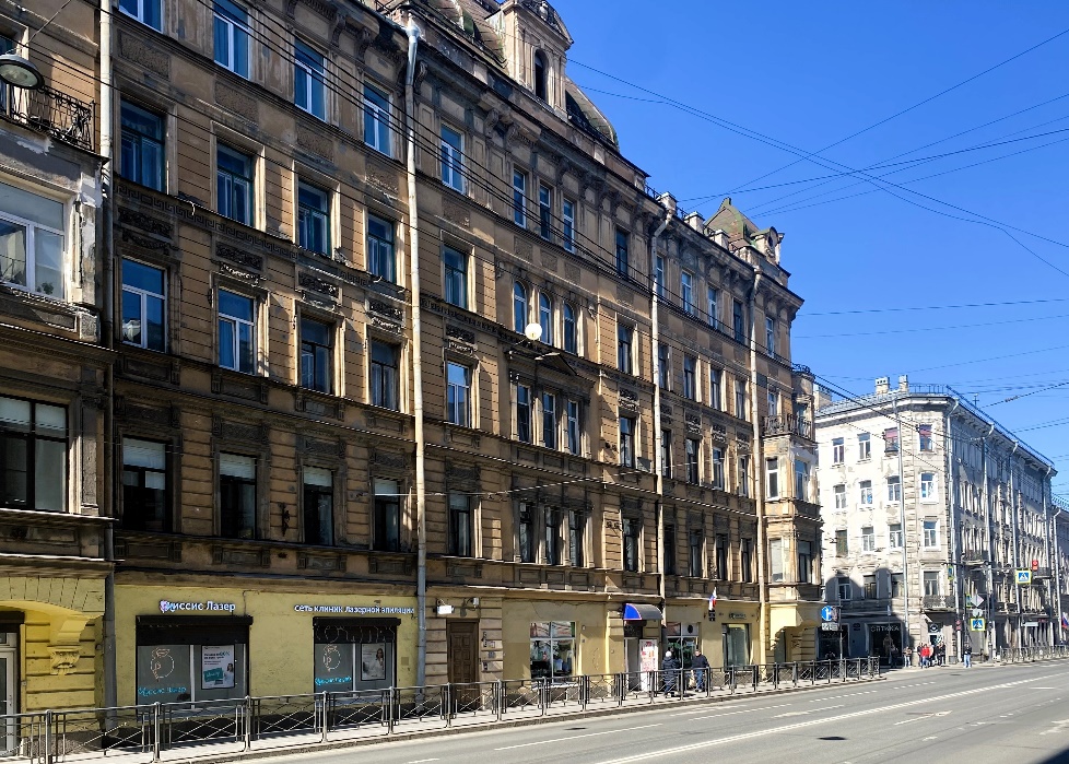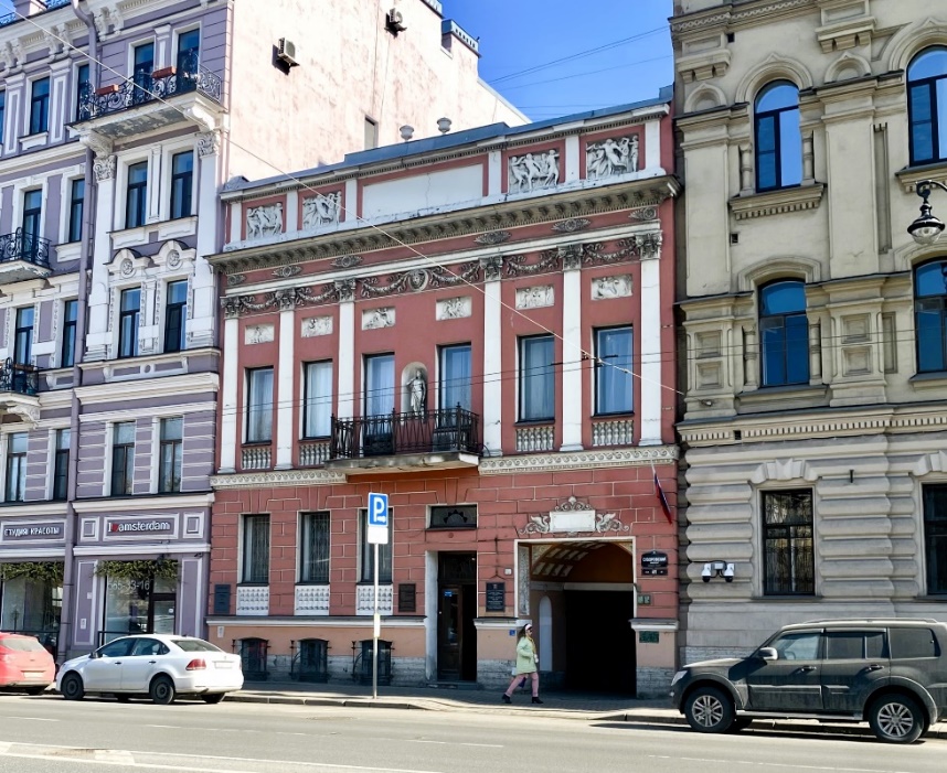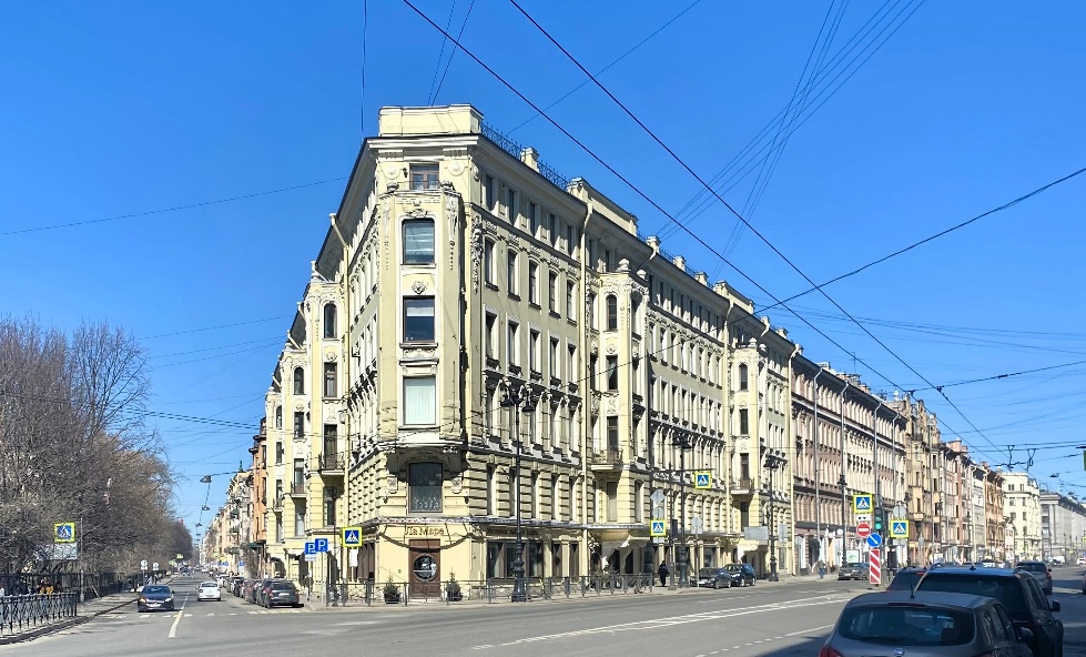 Пропустим несколько строений и задержимся напротив здания под номером 20, построенного в 1894 году по проекту архитектора Иосифа Ивановича Дитриха. Этот обычный доходный дом примечателен тем, что здесь в 1896-1906 годах жил и умер Владимир Васильевич Стасов – художественный и музыкальный критик, историк искусства, этнограф и общественный деятель. Сохранились фотографии ателье Карла Буллы, запечатлевшие в квартире Стасова участников музыкального вечера: Николая Андреевича Римского-Корсакова, Федора Ивановича Шаляпина, Цезаря Антоновича Кюи, Марию Гавриловну Савину и других.