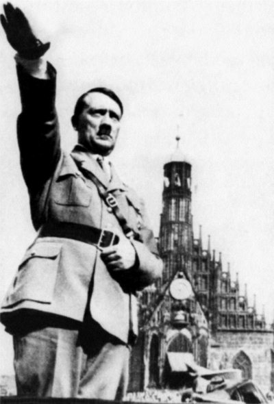 Адольф Гитлер использует один из наиболее мощных исторических сигналов – рука, повернутая ладонью вниз