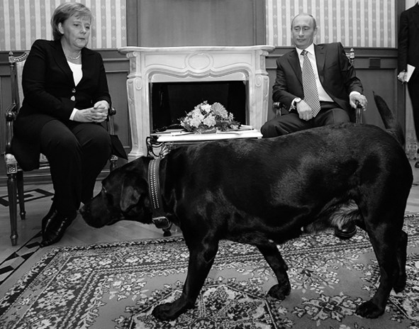 Послание, адресованное Путиным своим телезрителям, представляет его как человека семейного, любящего животных, принимающего высокую гостью в непринужденной, домашней обстановке. Послание, адресованное Ангеле Меркель, говорит языком внушающего страх бывшего «старшего брата» – Советского Союза: «Вот я какой, и я знаю твою страну как свои пять пальцев, не зря же я пять лет пробыл в дрезденской резидентуре КГБ. И сейчас я покажу тебе, диссидентке церковной, кто тут главный. И что я не только по-хорошему могу». Это, второе послание, судя по всему, достигло адресата. Говорят, Путин для канцлера Меркель является одним из немногих политиков на международной арене, которых она признаёт ровней себе, и что он как никто другой бросает вызов ее духу сопротивления127.