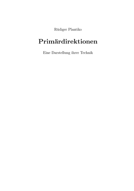Die vorliegende Arbeit versteht sich als ein Beitrag in dieser Richtung, indem die Direktionslehre nicht nur theoretisch dargelegt wird, sondern auch an einem umfassenden Beispiel zur Anwendung kommt. Der Unterschied zu den ausgezeichneten Werken von KÜHR ([KK]) und KÜNDIG ([KP]) liegt vor allem darin, daß die Darstellung nicht durch die Fixierung auf ein ’alleinseligmachendes’ System vereinseitigt wird – beim gegenwärtigen Stand der Forschung wäre das unehrlich. Von der sehr guten Arbeit von W. KNAPPICH ([WK1]) hoffe ich mich dadurch zu unterscheiden, daß ich die Direktionen als Teil der gegenwärtigen astrologischen Forschung ansehe – und nicht als ein bloß noch historisches Phänomen. Auch wird dem Formelteil (Kapitel 4) konsequent der Begriff der mundanen Position als der zentrale Punkt aller Direktionssysteme zugrundegelegt. Dadurch gewinnt die mathematische Formulierung des Problems an Struktur und hoffentlich an Verständlichkeit.