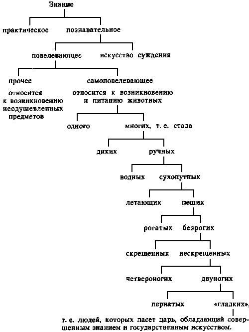 Все разделение знания, приводящего к царственному искусству политика, можно представить следующим образом: