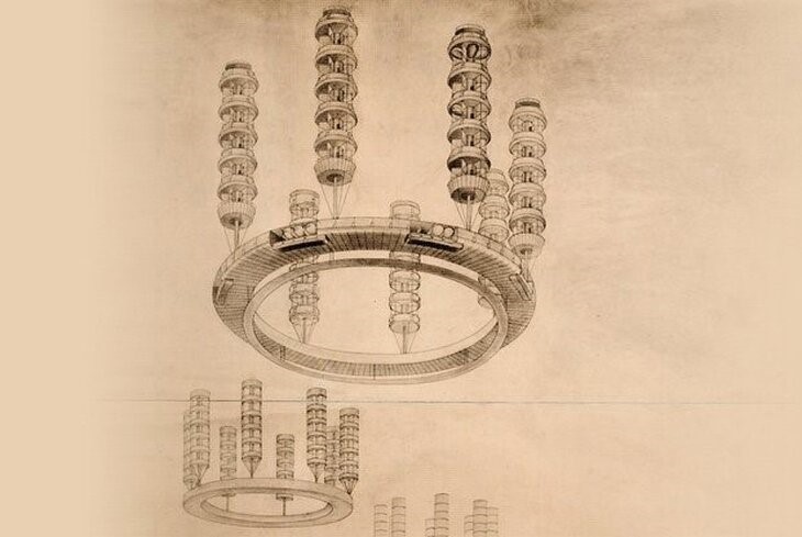 Летающий город. Г. Крутиков, 1928 г.