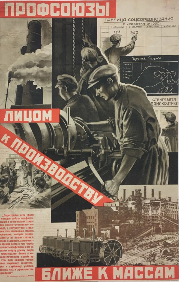 Плакат «Профсоюзы, лицом к производству. Ближе к массам». Автор неизвестен, 1930 г.