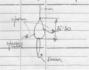 4. Ловля окуня в озере Ак-Кабак под Кустанаем. Рисунок оснастки сделан со слов Антонова С. Л. (г. Миасс).