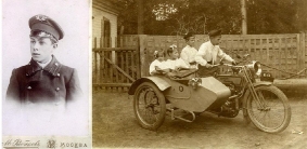На фото слева – Иван Иванович Плохов, а справа – фотография его сыновей: за рулем отцовского мотоцикла марки Harley – Davidson – Евгений, а сзади – Владимир.