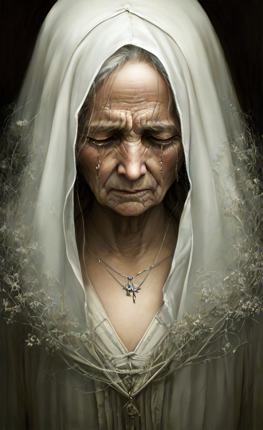 Это продолжалось, пока однажды мужик не отправился косить, а жена его приготовила завтрак и пошла за старушкой. Занавеску отодвинула, смотрит, а там то ли человек, то ли что, заросшее шерстью. Стоит, прихорашивается. Заметила чужой взгляд, тут же одежду накинула и снова приняла облик искалеченной старушки. Женщина сделала вид, что ничего не увидела, дала старухе завтрак, а сама побежала к колдуну.