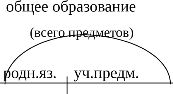 Учитывая взаимодействие психофизиологических механизмов речи, а также считая родной язык специальным образованием (В. С. по Ледневу), можно предположить, что учебные часы в начальной школе, должны быть распределены в пропорции «золотой целостности» – общее образование /уч. предм.: уч. предм./родн. яз.= число «Фи»