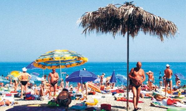 Фото 7. Пляж Сочи, 2007 г. Будущая столица Зимних игр живет своей привычной курортной жизнью