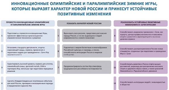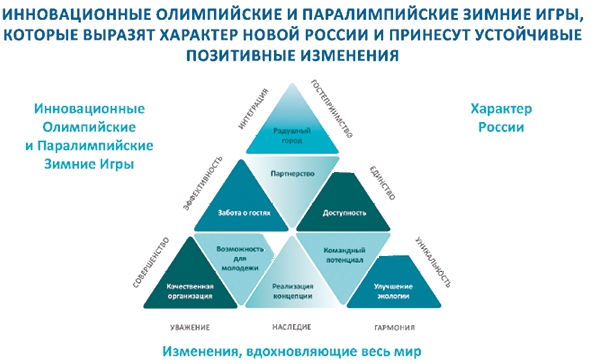 На этой основе топ-командой создается такое ви´дение: «Инновационные зимние Олимпийские и Паралимпийские игры раскроют характер новой России, привнесут позитивные изменения, вдохновят весь мир». Здесь каждое слово выстрадано и стоит на своем месте не просто так.