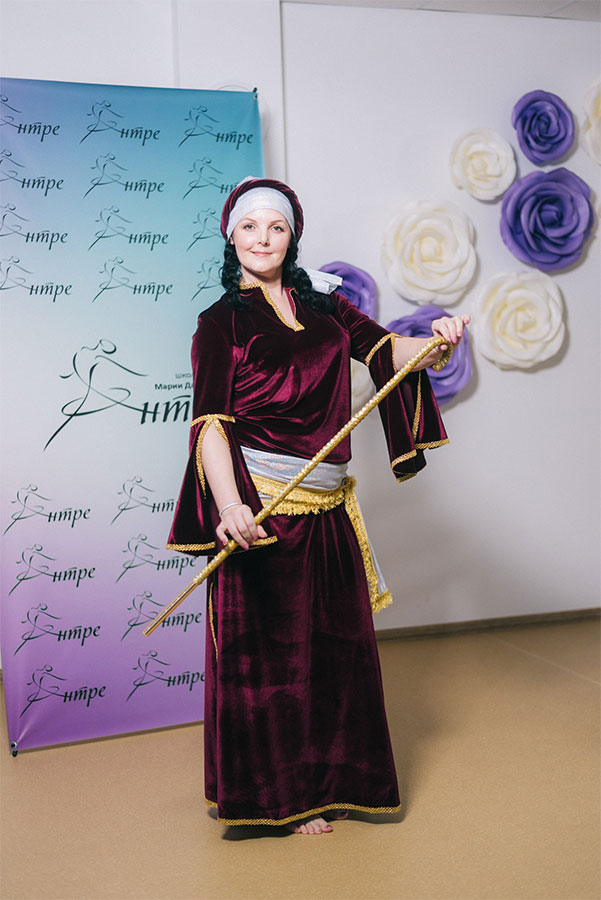 Костюм, также придуманный известным хореографом, представляет собой яркое платье с оборками и асимметричным подолом, голову украшают цветы или помпоны.