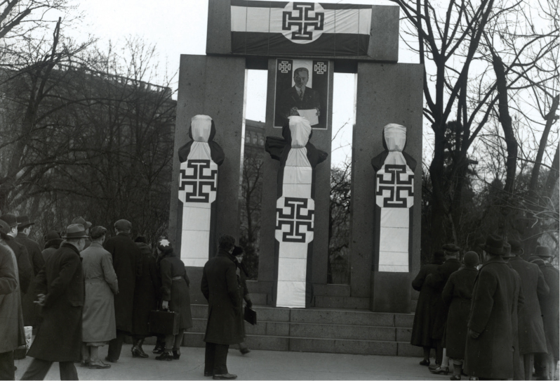 Abbildung 28: Republikgründungsdenkmal nach den Februarkämpfen 1934 (Bildarchiv der Österreichischen Nationalbibliothek)