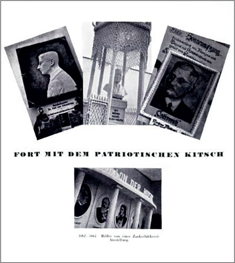 Die Überziehung Österreichs mit Dollfußdenkmälern unterschiedlichster künstlerischer Qualität war 1936 sogar dem „Profil“ zu viel. Angesichts von zweifelhaften Dollfußbüsten aus Zuckerguss und unfreiwillig komischen Schuschniggporträts in Marzipan und Schokolade (Abbildung 37) donnerte das ansonsten regimetreue Organ der Architektenvereinigung entschlossen: „Fort mit dem patriotischen Kitsch!“220