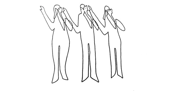 4. Каждый участник мягко касается верхнего края уха человека, который стоит слева от него. Возьмитесь пальцами левой руки за верхний край уха вашего соседа.