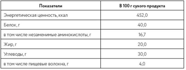 СБКС должна содержать 40 % белка, 20 % жира и 30 % общих углеводов, в том числе 4 % пищевых волокон, иметь энергетическую ценность 452 ккал/100 г.
