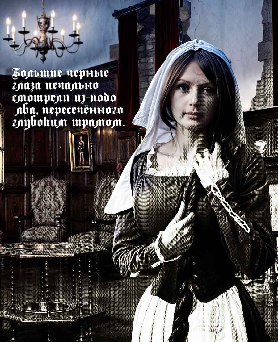 По лёгкому акценту Грир понял, что он из бельцев. Переведя взгляд с подрагивающего в ложе арбалета кончика болта, нацеленного ему в грудь, на дверь, Грир увидел там девушку в костюме состоятельной горожанки, с высокой полной грудью и белоснежном чепце, покрывающем тёмные волосы. Большие черные глаза печально смотрели из-подо лба, пересечённого глубоким шрамом. При всей своей грусти эти глаза говорили о безжалостности, закалённой в страданиях и ненависти, в битвах и скорби.