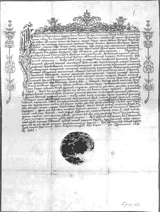 ОТКРЫТЫЙ ЛИСТ, С КОТОРЫМ ПЕТР I ПУТЕШЕСТВОВАЛ ЗА ГРАНИЦЕЙ ПОД ИМЕНЕМ ПЕТРА МИХАЙЛОВА. 1697 г.
