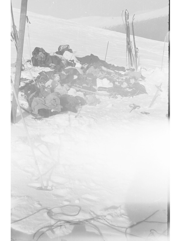 Далее повторю одно замечание, которое лучше всего характеризует положение дел (из допроса Брусницина): «Снег выбирали при помощи лыж и лыжных палок. Работали человек десять без всякой системы. В большинстве все вытаскивали прямо из-под снега, поэтому установить, где и как лежала каждая вещь очень трудно».