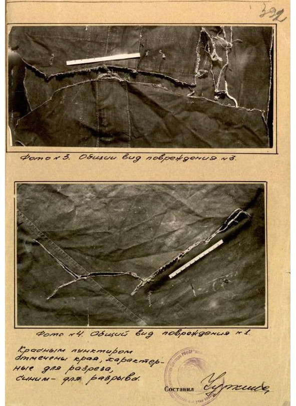 Всё вроде просто и понятно. Хотя не совсем. Почему в материалах дела нет фотографий общего вида палатки с повреждениями? Хотя такие фотографии существуют и их можно найти, но и их немного.