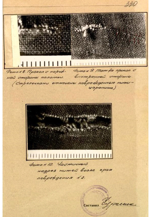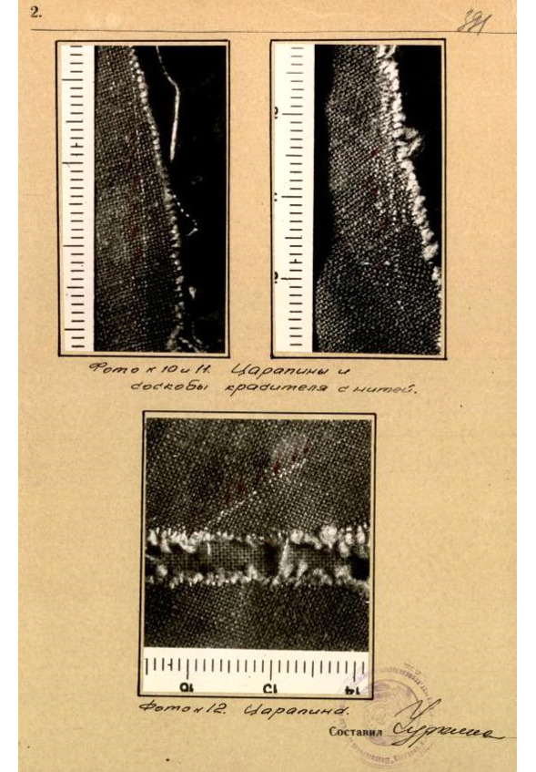Однако… Словесное описание, фотографии и схемы не заменяют друг друга, а дополняют. Эксперт, который производит экспертизу, сам решает, что и как фотографировать, что лучше проиллюстрировать схемами, какие из фотографий следует включить в экспертизу, а какие не нужны. Эксперт сам составляет фототаблицы, которые входят в экспертизу и, затем, в материалы дела. А все негативы отдаёт следователю, и тот может распоряжаться с ними по своему усмотрению, лишь кроме одного – он уже не может сам включать их в экспертизу. Таким образом, следует, что данные негативы могли быть в руках следственных органов. И они, вероятно, где-то есть до сих пор.