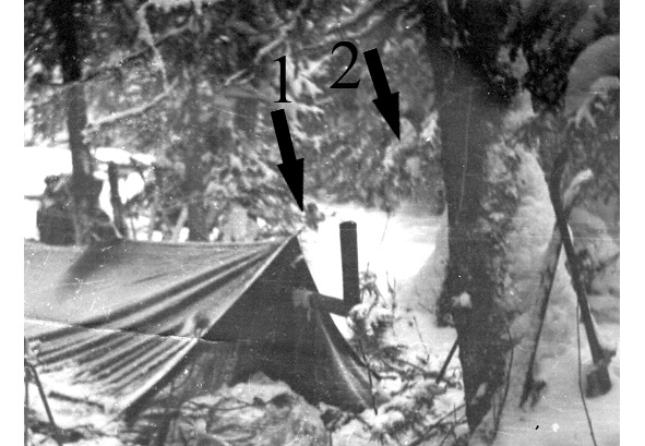 Для сравнения приведу фрагмент уже известной фотографии из разрозненных (в первой части обозначена как Р-07), где прекрасно виден противоположный торец палатки, там, где выходит труба.